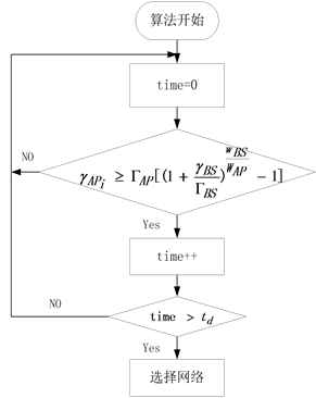 合理的切换算法可以保证用户的业务使用在越区时不中断,并且保证业务的顺畅。目前关于垂直切换判决的算法已成为很多学者和专家的研究热点。基于模糊层次分析法的网络选择算法全面考虑了网络性能、用户特性等因素,但是在判决矩阵的构造中采用了专家打分的方式,带有较强的主观性[1] [2] 。基于接收信号强度的算法主要根据接收信号的强度来选择接入网络,算法相对简单,但是用于水平切换较多[3] 。基于接收信号强度和滞留时间的切换算法在之前的基础上增加了一个滞留时间的判断,用以减少乒乓效应,但是没有考虑信道干扰与噪声的影响[4] 。基于灰色预测的切换方法主要通过提前预测移动用户的接收信号强度,提前触发切换以达到降低切换时延的目的,但是该算法相对较为复杂[5] 。基于信号与干扰加噪声比(Signal to Interference plus Noise Ratio, SINR)的垂直切换算法考虑了不同接入网络的SINR影响,以保证用户终端获得尽可能大的下行数据速率,但是该算法也没有考虑终端在切换边界来回运动时带来的频繁切换[6] 。针对这一问题,本文提出一种基于SINR和滞留时间的切换算法,该算法不仅能保证用户多媒体业务的Qos,使网络吞吐量最大化,中断率最小化,而且能减少不必要的切换,减少乒乓效应带来的影响。