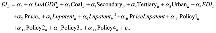 本文用能源消费强度作为模型的应变量。模型自变量的选择主要是基于第二章的国内外以往相关文献的研究和本文第三章关于中国地区能源消费强度影响因素的现状分析及扩展。