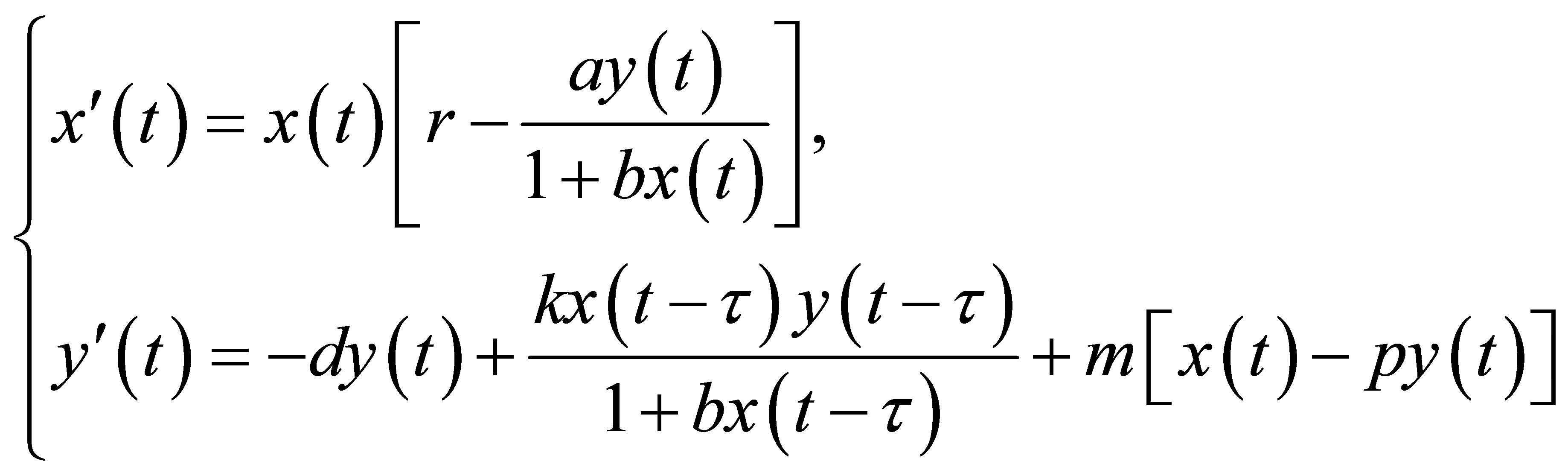 (参见[2] ) Holling-II功能性反应函数,因而本文在文献[12] 的基础上建立了一类具人工控制捕食者迁移率和Holling-II型功能性反应的时滞捕食–食饵模型,使之更符合实际生态意义并对该模型平衡点的存在性,稳定性及Hopf分支进行研究,运用中心流行定理和规范型理论,得到该害虫–天敌系统达到动态平衡的条件,并分析了这些条件与时滞和迁移率因素之间的关系。
