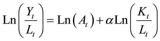 ,当资本和劳动为一定量的时候,产量变化的唯一前提是技术进步的发生。本文选用传统的Cobb-Douglas生产函数: