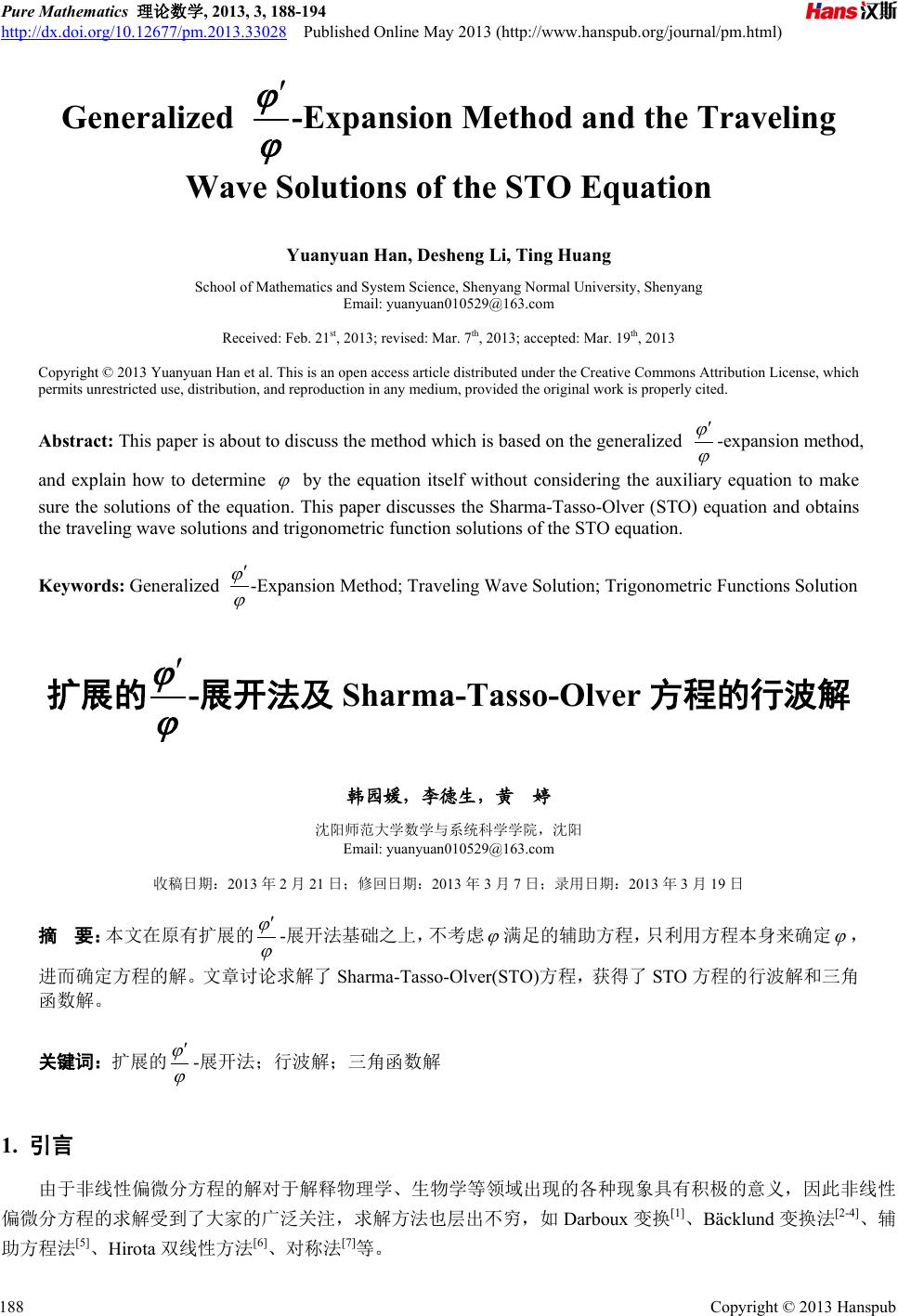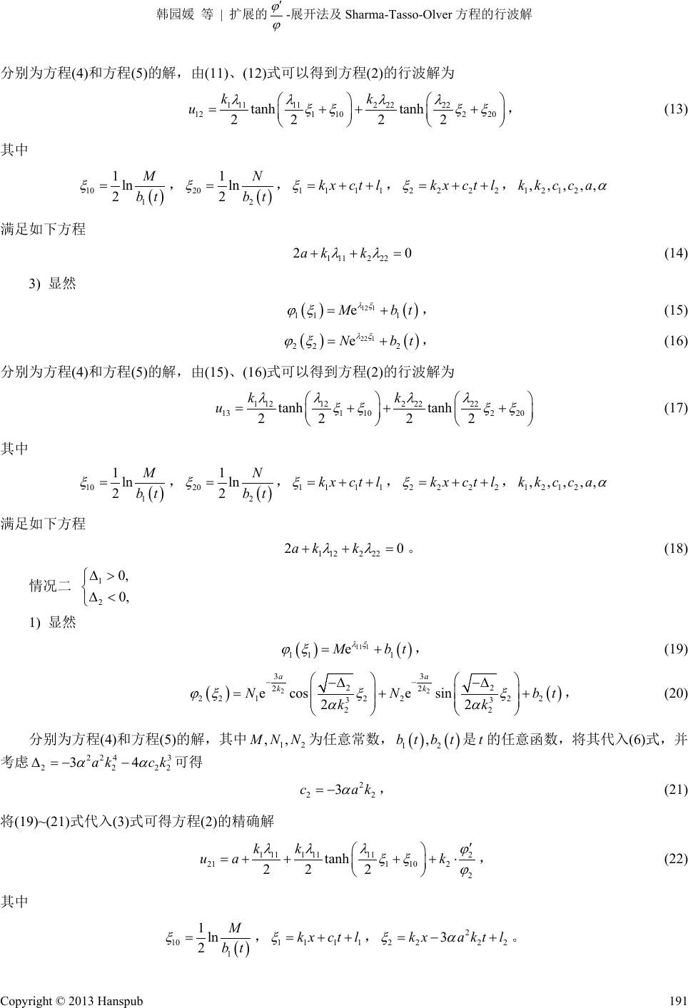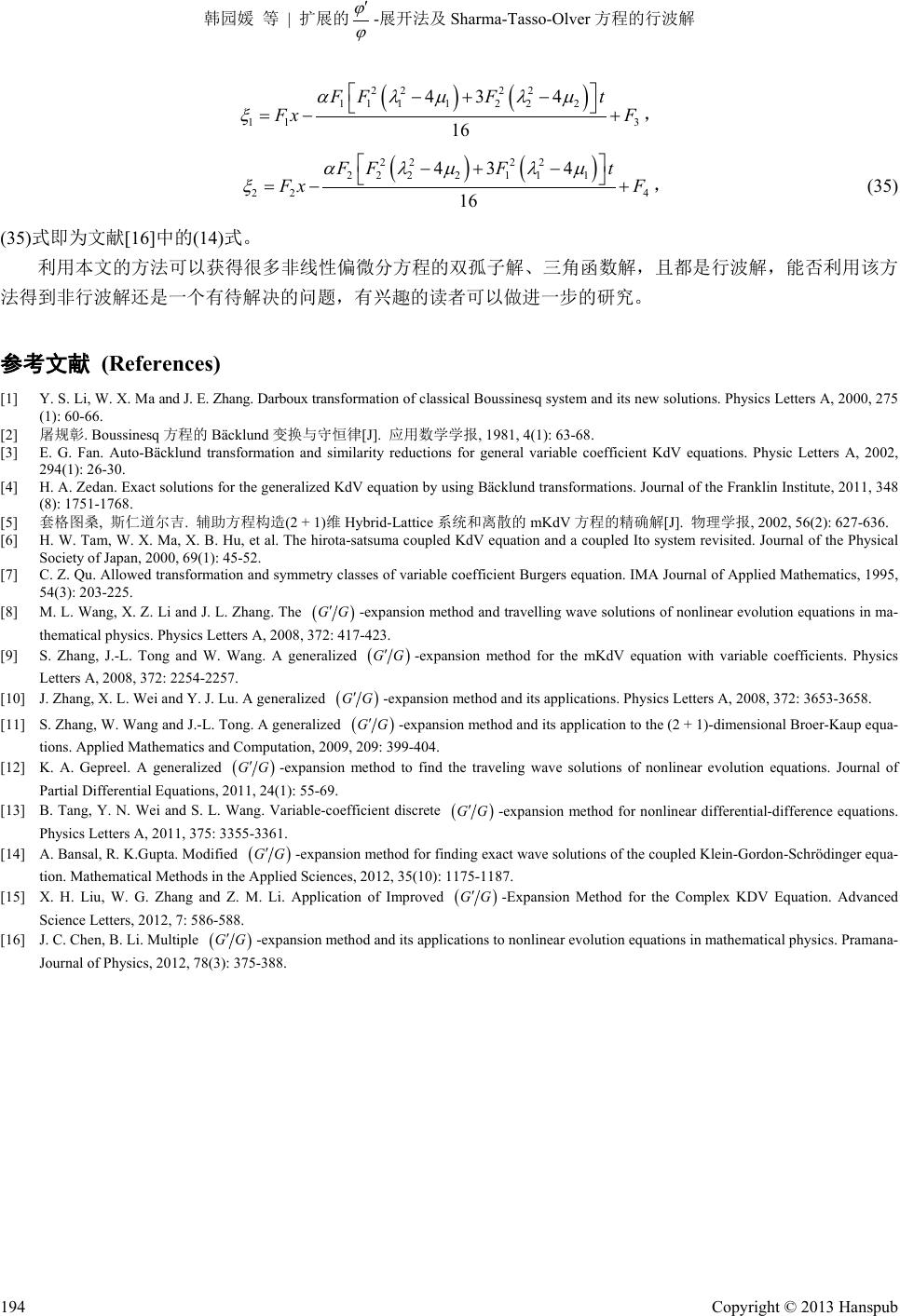 expansion method to find the traveling wave solutions of nonlinear evolution equations. Journal of