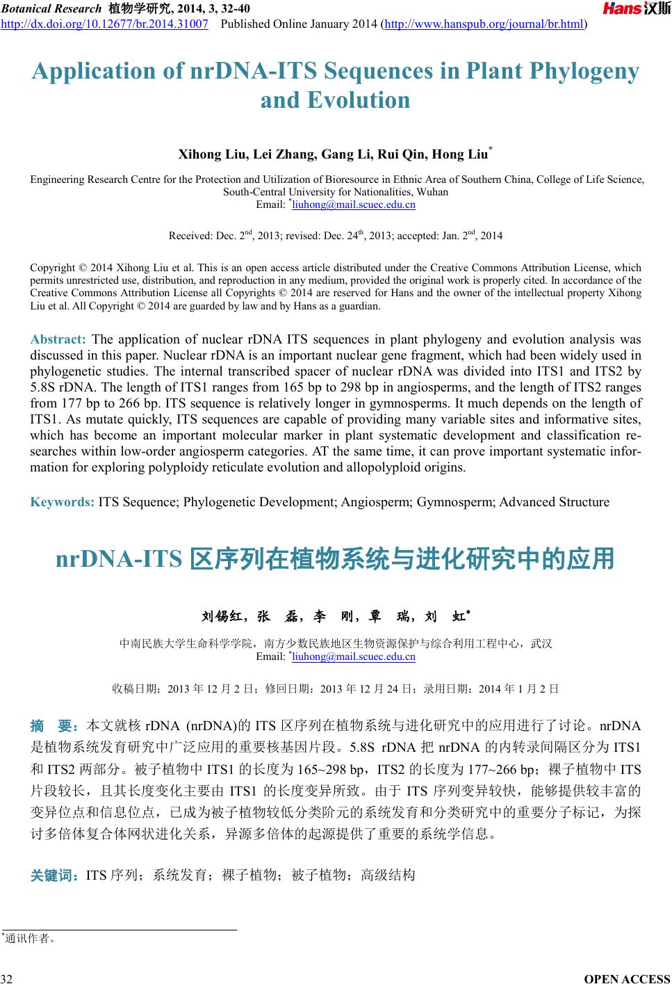 discussed in this paper. Nuclear rDNA is an important nuclear gene fragment