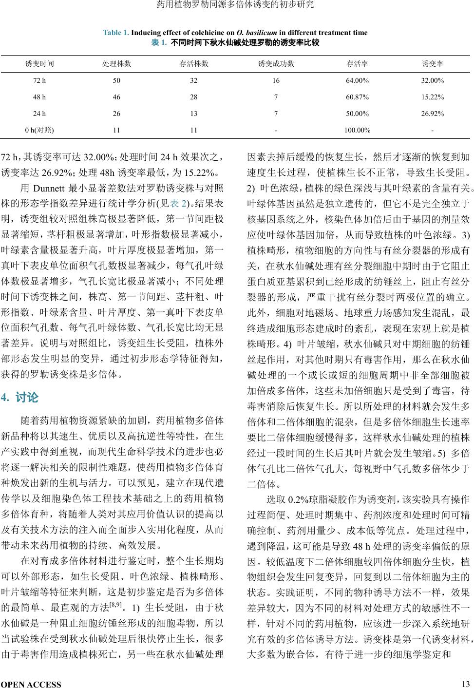 胞学特征统计分析证实,获得的罗勒诱变株是多倍体。
