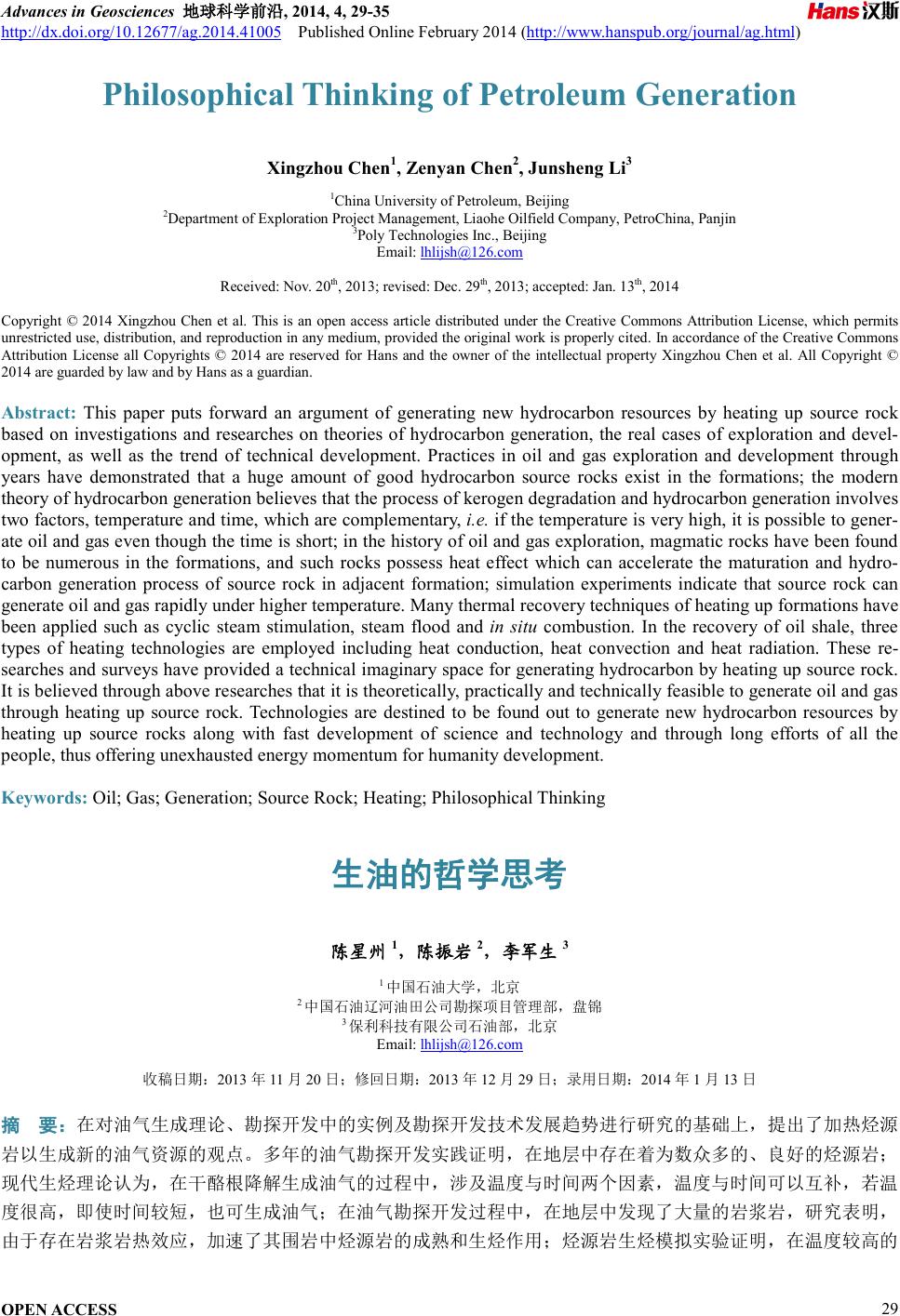 Philosophical Thinking of Petroleum Generation
