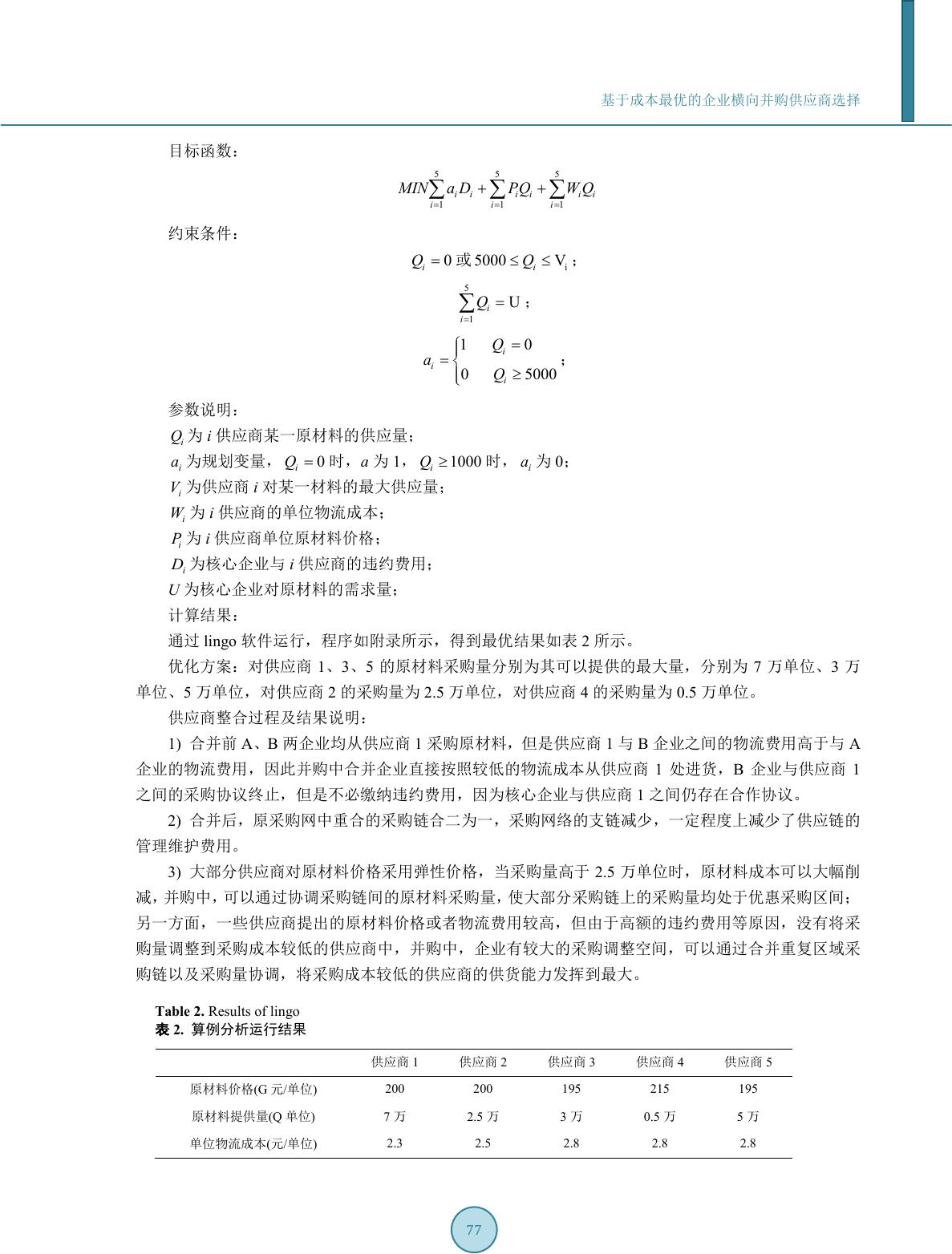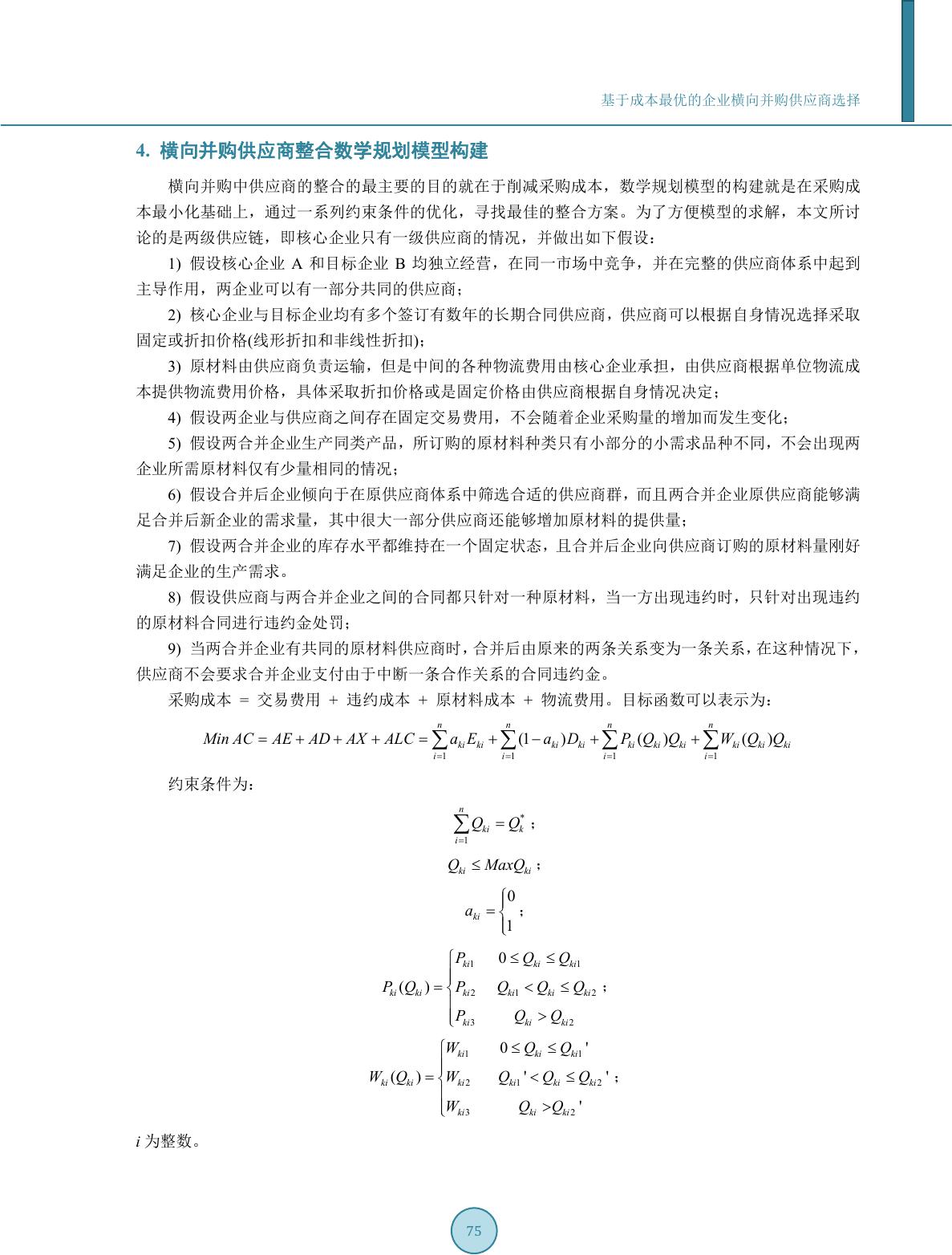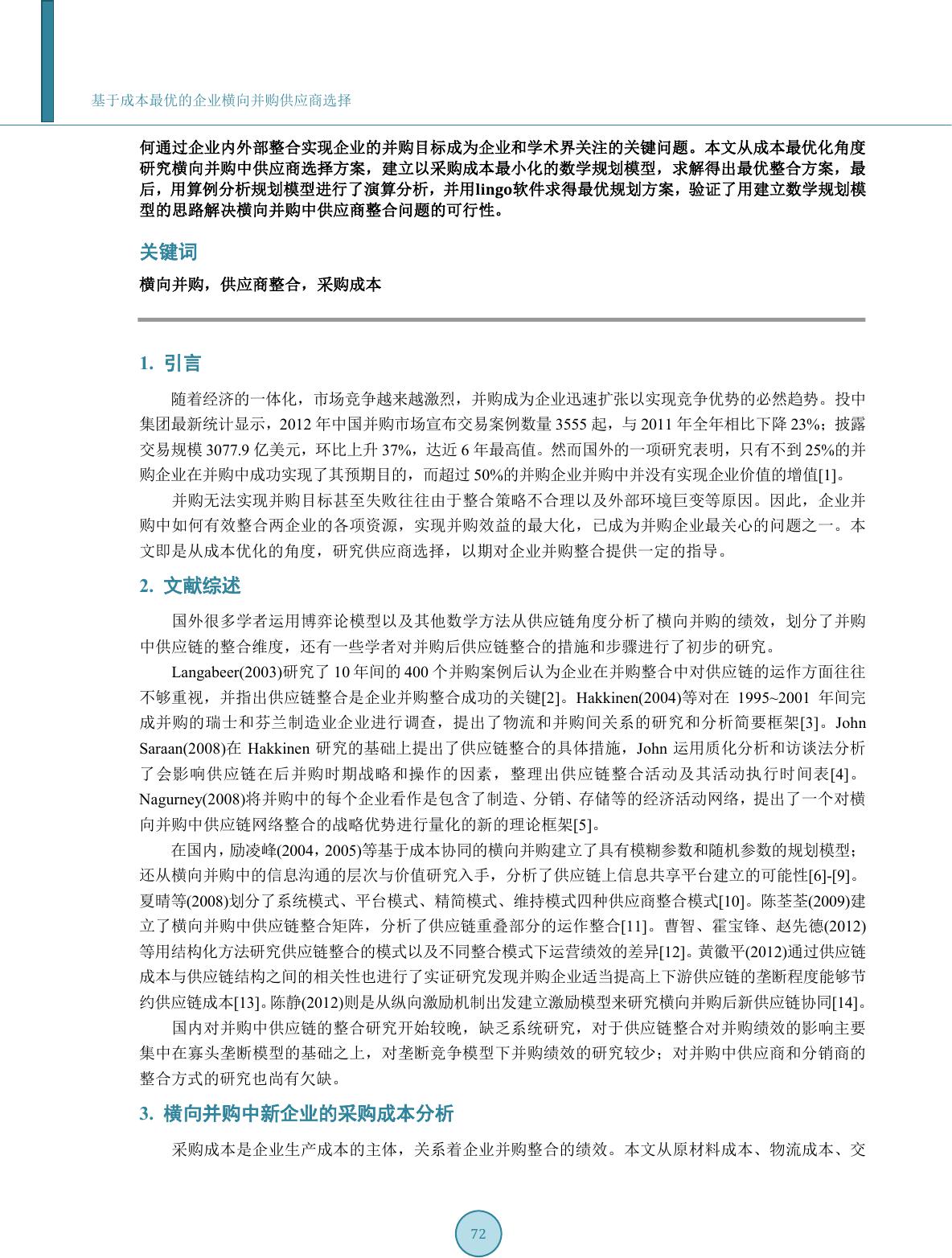 基于成本最优的企业横向并购供应商选择