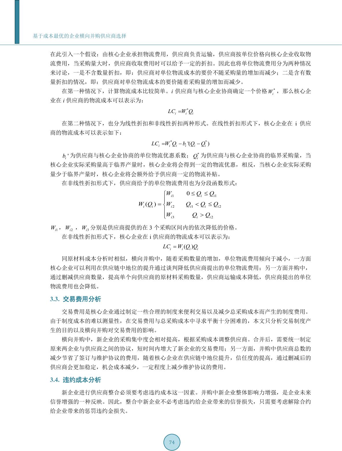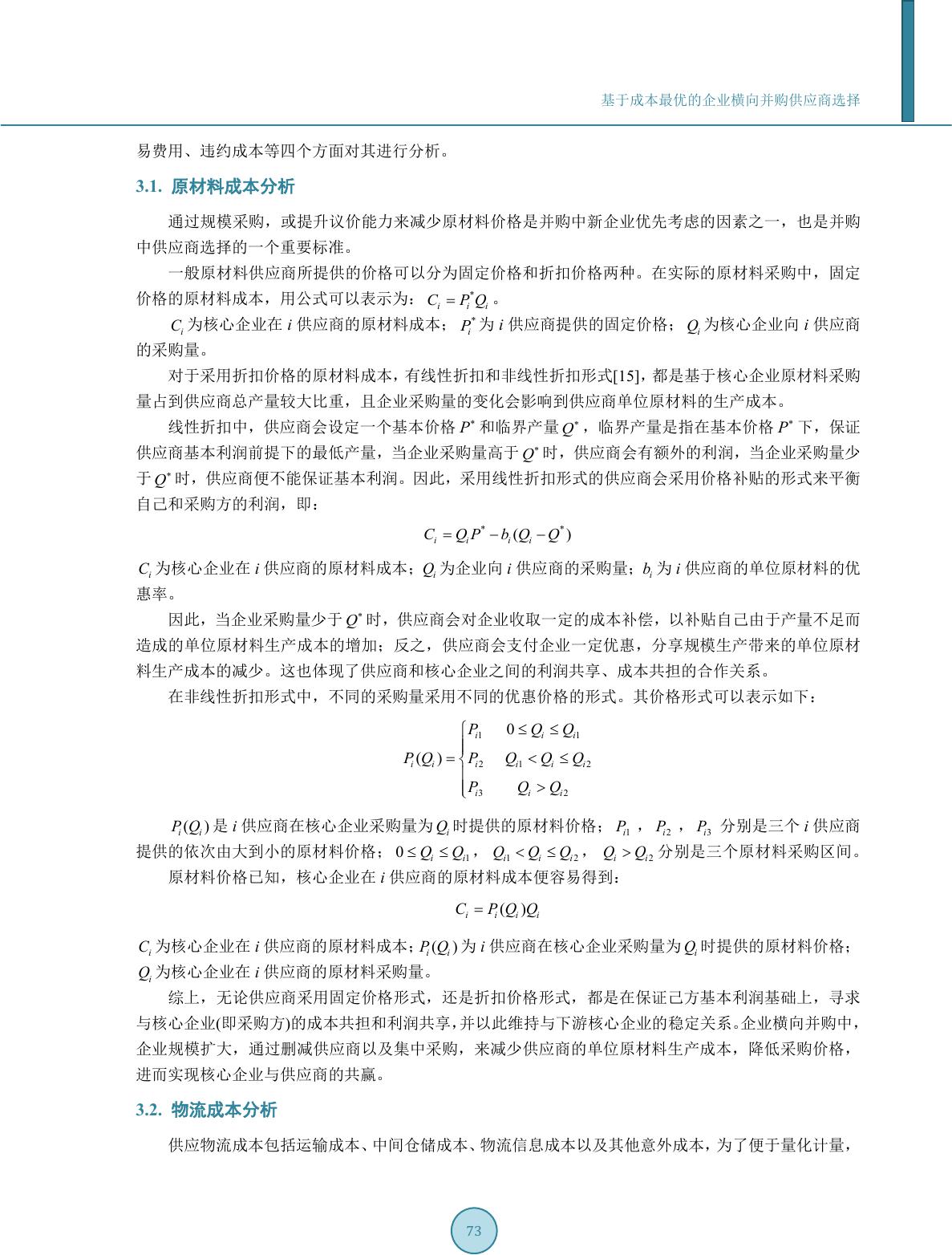rizontal merger. In this paper, purchase cost is analyzed by a mathematical model of purchase cost