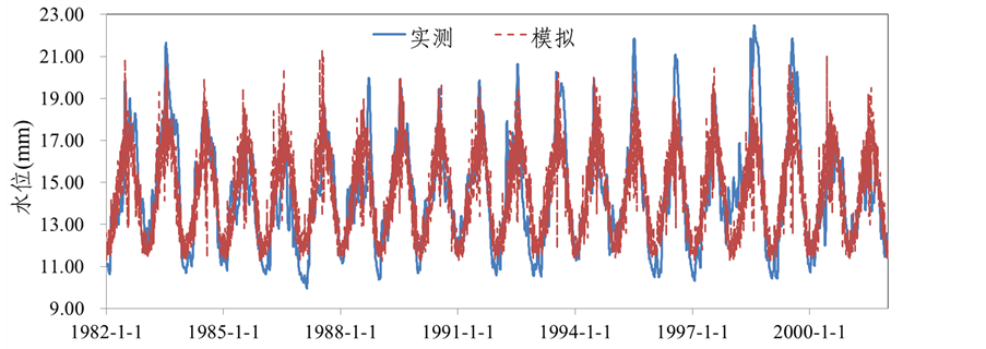 图3. 鄱阳湖水位实测值与BP神经网络模拟值对比图