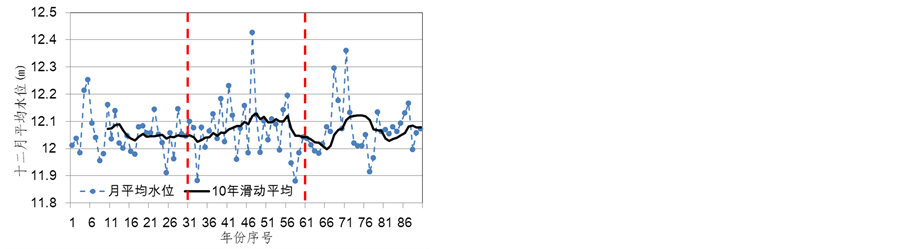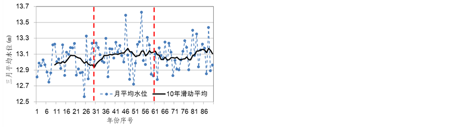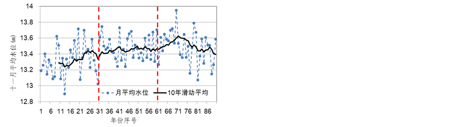 BP神经网络的输入预报因子,从而模拟得到未来气候变化情景下鄱阳湖水位系列,对未来鄱阳湖水位变化情况进行了分析。研究结果表明:在RCP4.5情节下,鄱阳湖未来平均水位的多年均值变化较小,但是平均水位的年际变化在各月份之间差异较大。