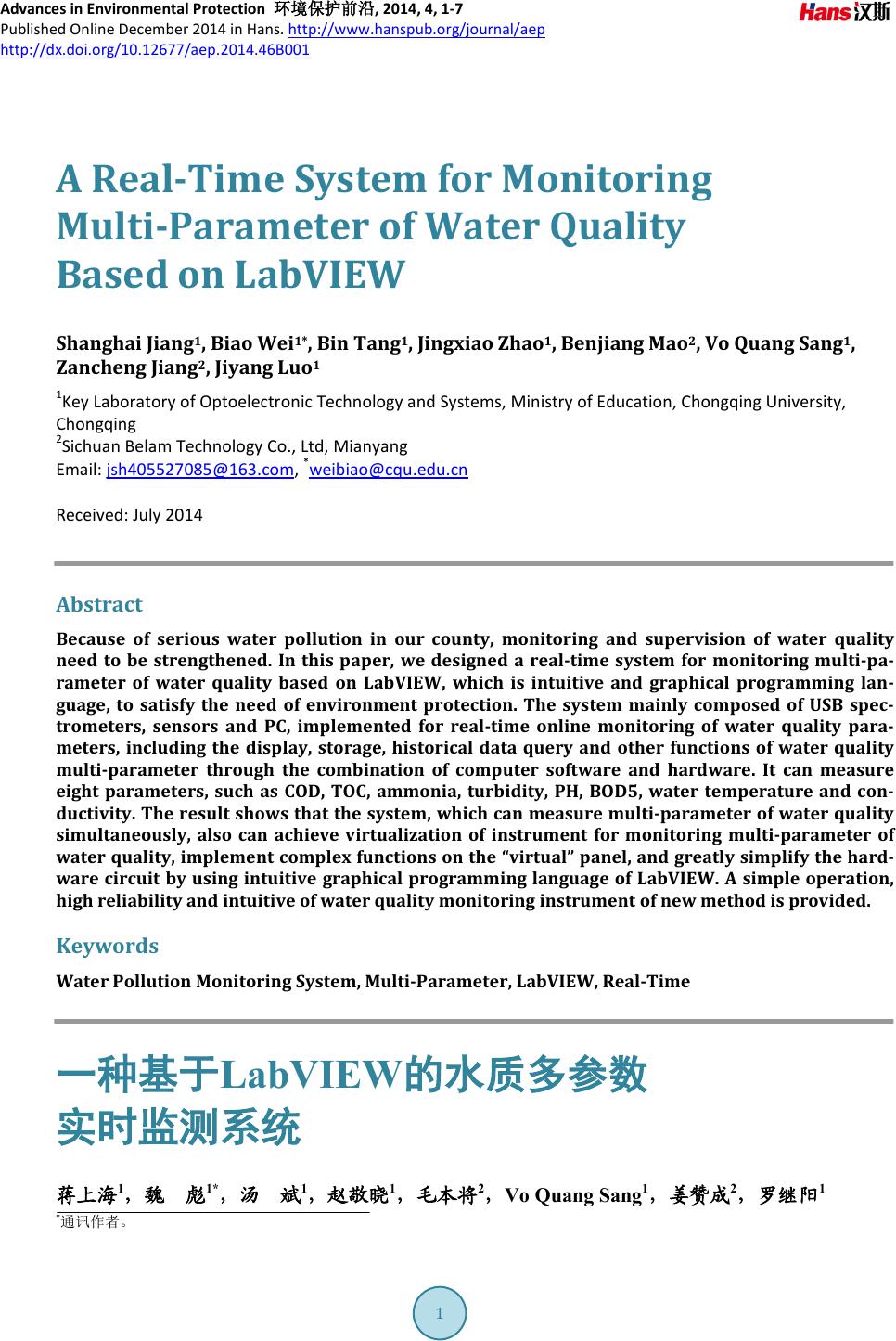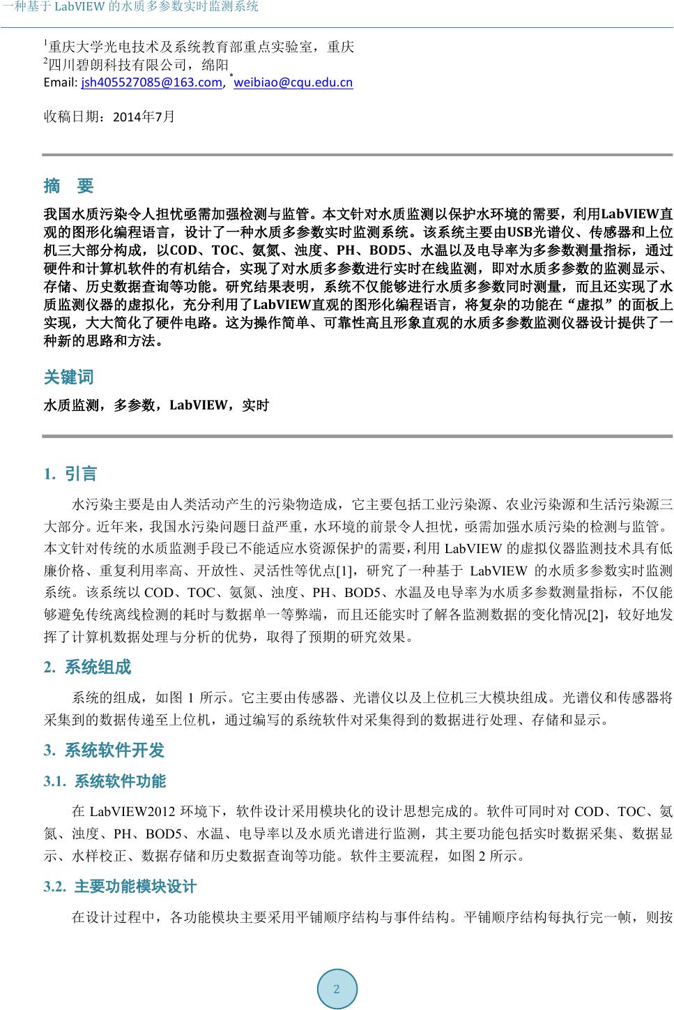 rameter of water quality based on LabVIEW, which is intuitive and graphical programming la