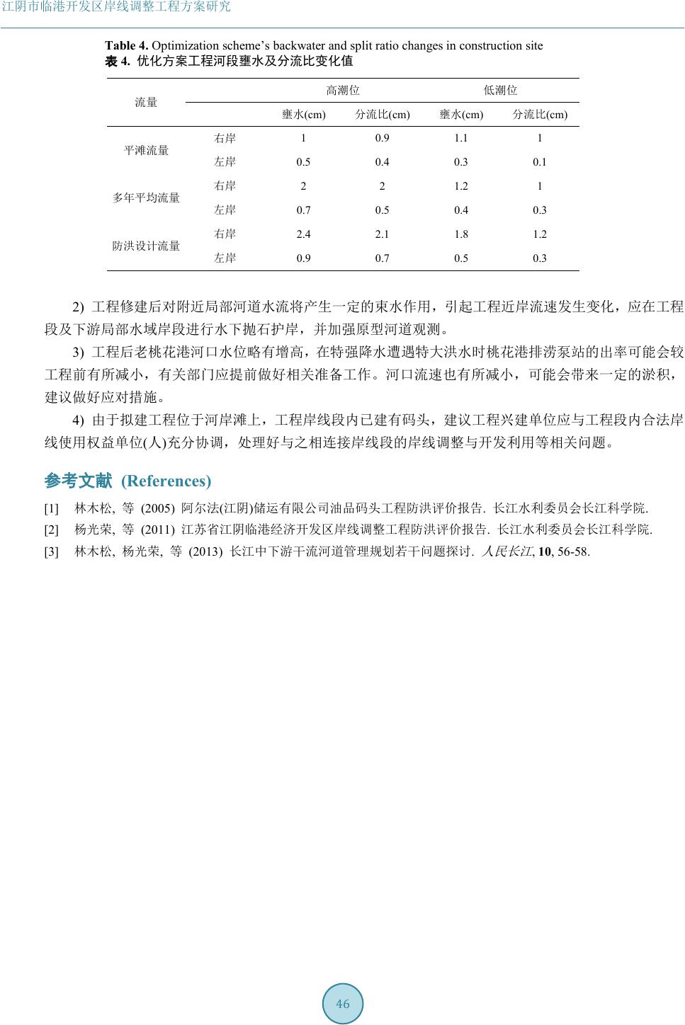 明,优化方案最大壅水值出现在岸线调整工程头部的老桃花港处,最大壅水值