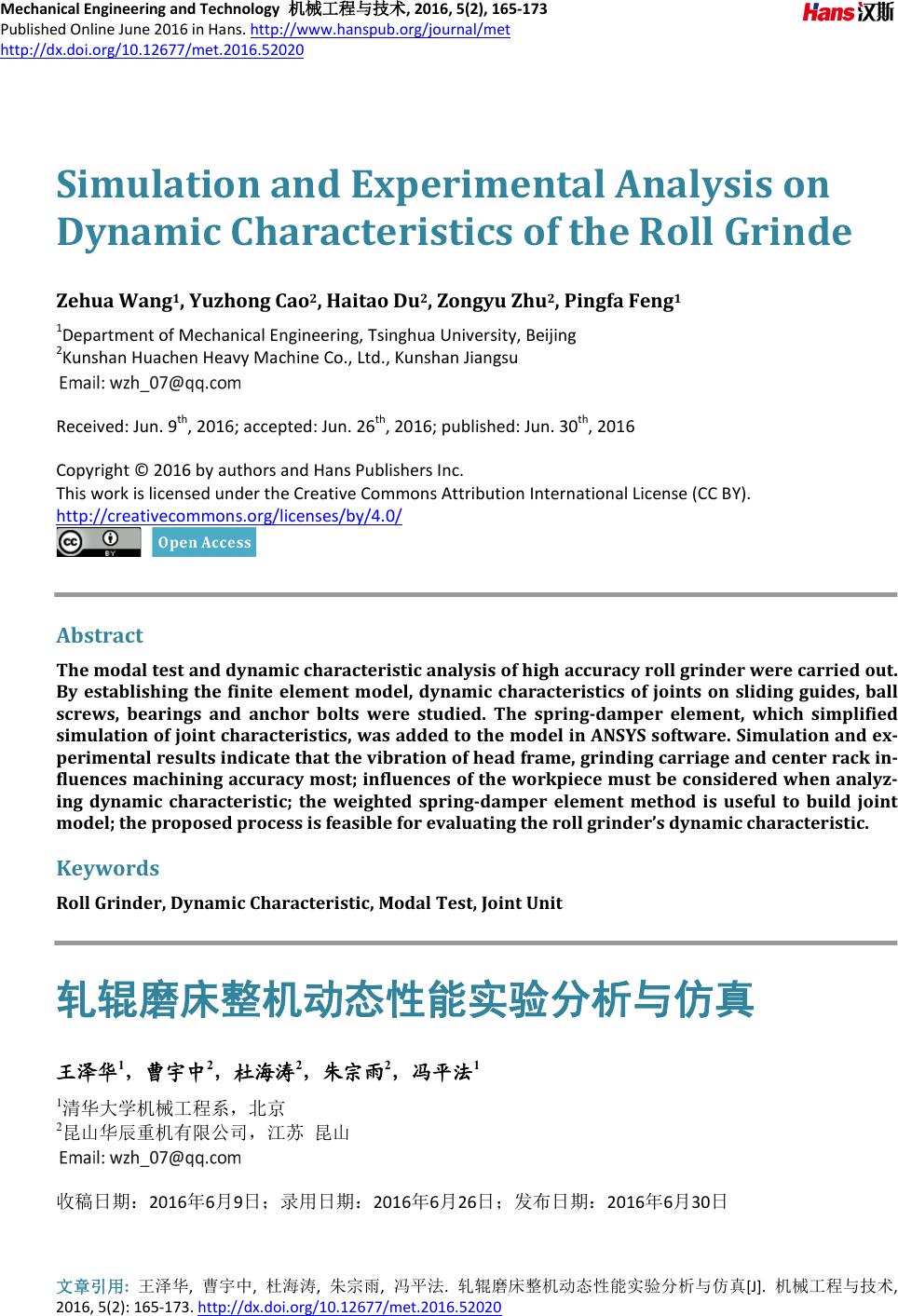 The modal test and dynamic characteristic analysis of high accuracy roll grinder were carried out.