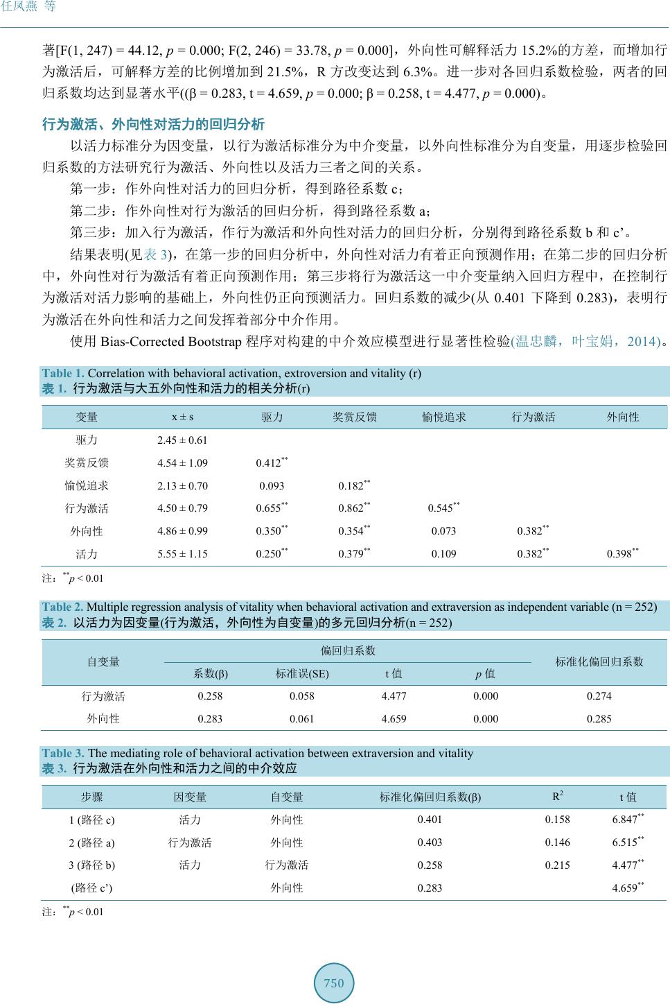 Table 3. The mediating role of behavioral activation between extraversion and vitality