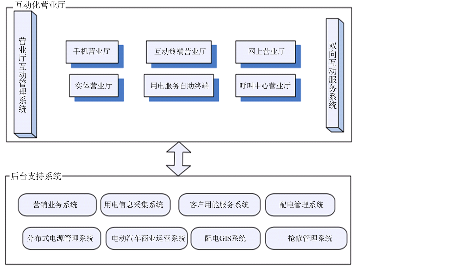 营业厅是是供电企业客户服务的重要手段,也是供电企业对外形象的窗口,直接反映了供电企业管理水平、服务质量、业务水平和工作效率,对树立供电企业品牌形象具有重要意义[4] 。作为供电企业对外服务的窗口,国内大部分供电营业厅还存在着互动水平不足的问题,无法全面支撑智能电网新业务的开展,主要体现在以下几个方面[5] -[7] :