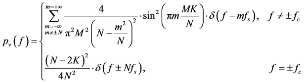 但另一方面,(2)式去除了原码元0的纯正弦波调制波形,这可能会减小功率谱中的载波分量从而降低频谱利用率[10] ;考虑到信源等概时码元0的出现概率只有1/M,当M较大时对调制信号的功率谱不会有多大影响。从审慎的角度出发,下节将在参考文献[6] 的基础上,严格推导(2)式MPPSK调制信号的功率谱表达式,并比较两种调制方式和不同调制参数对功率谱的影响。