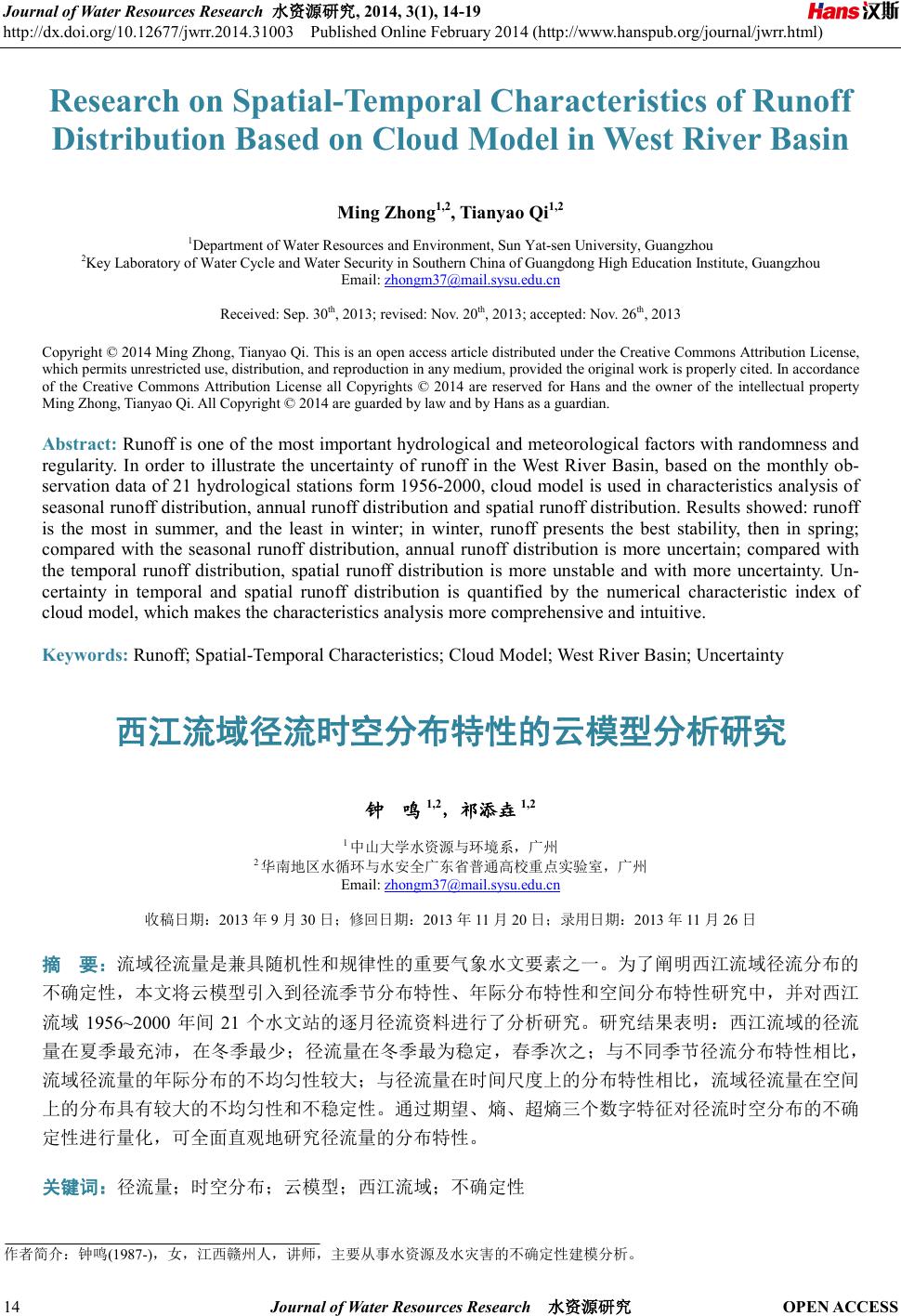 http://dx.doi.org/10.12677/jwrr.2014.31003