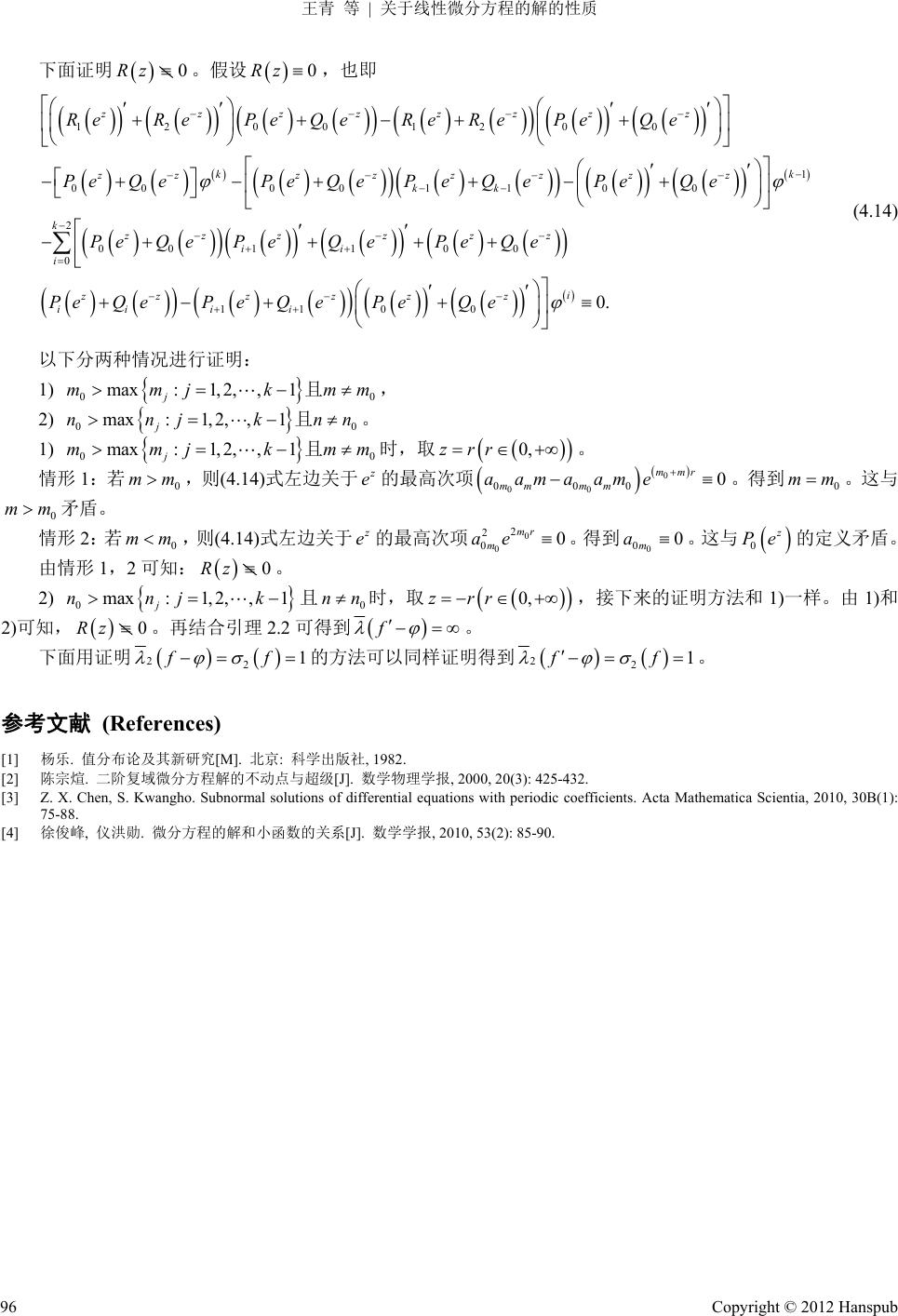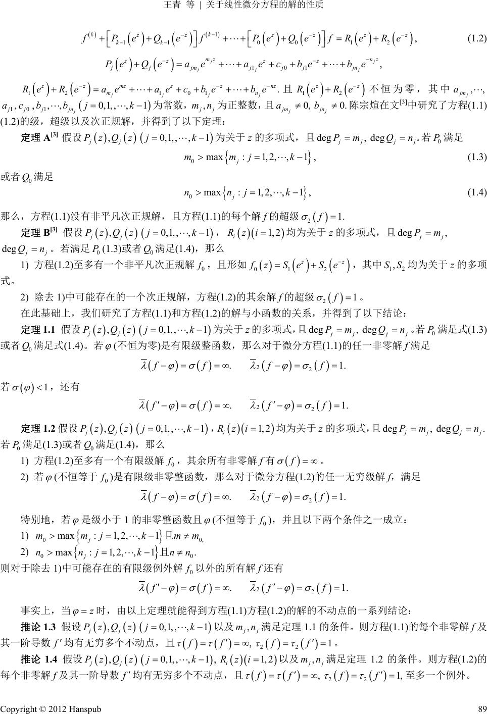 [2] 陈宗煊. 二阶复域微分方程解的不动点与超级[J]. 数学物理学报, 2000, 20(3): 425-432.