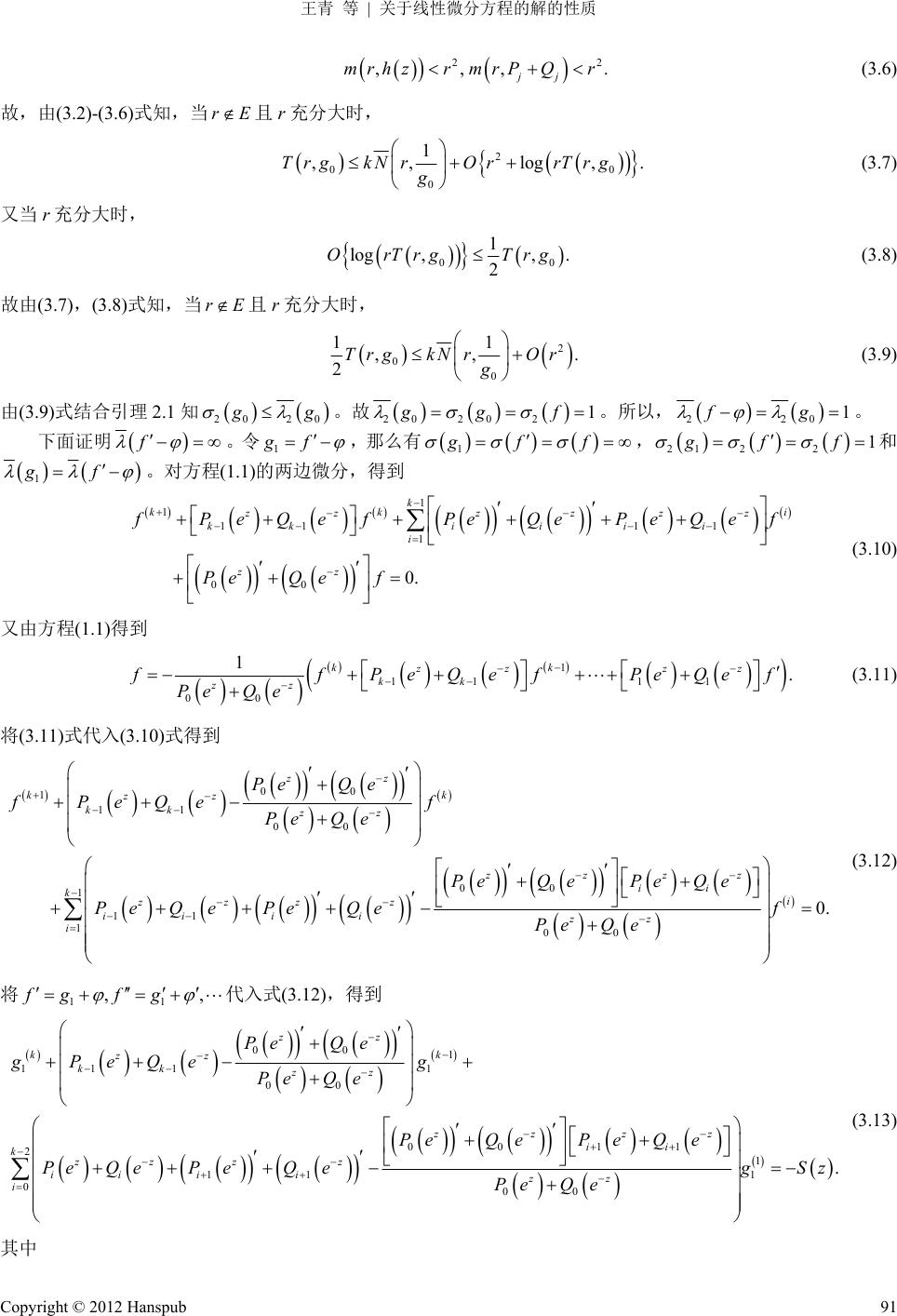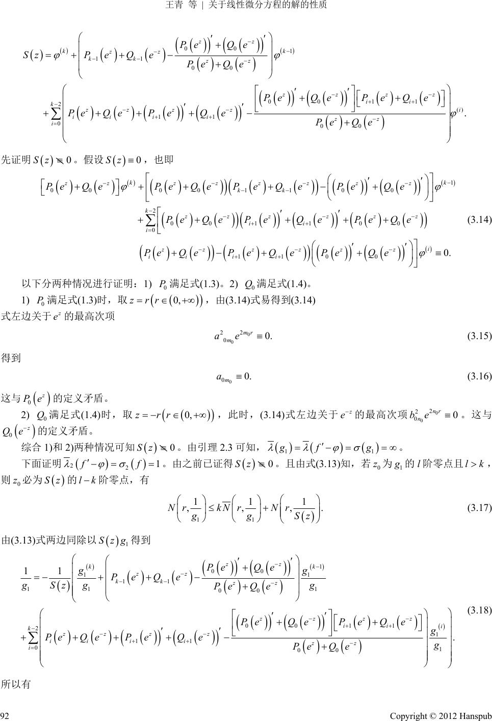 关键词:微分方程;整函数;小函数;收敛指数