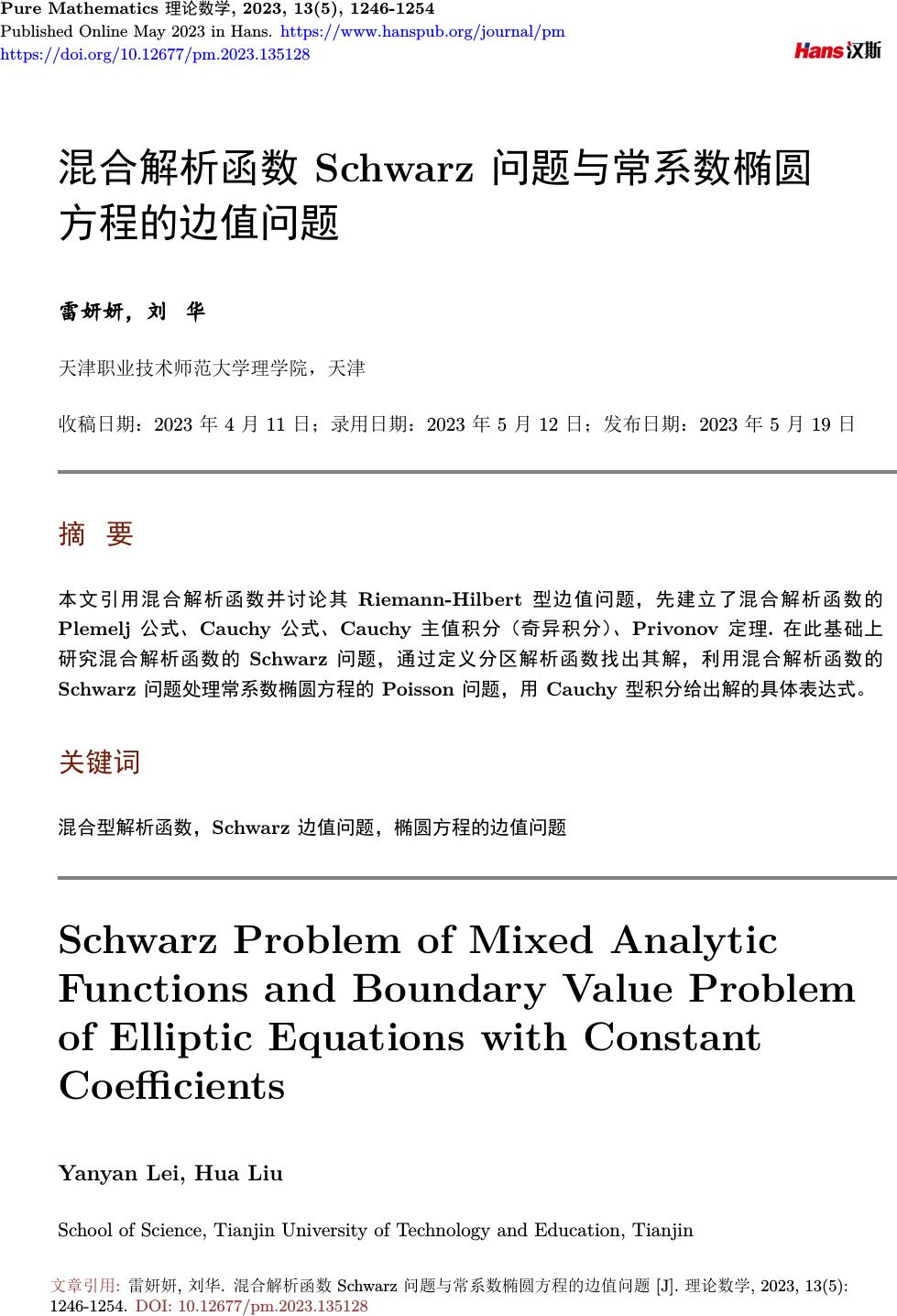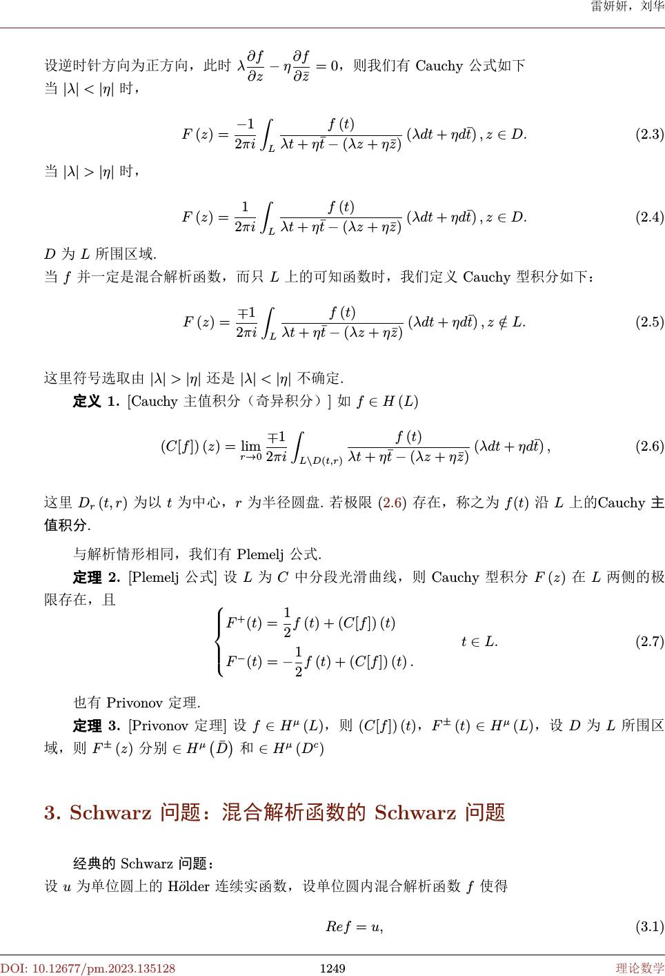 问题,通过定义分区解析函数找出其解,利用混合解析函数的